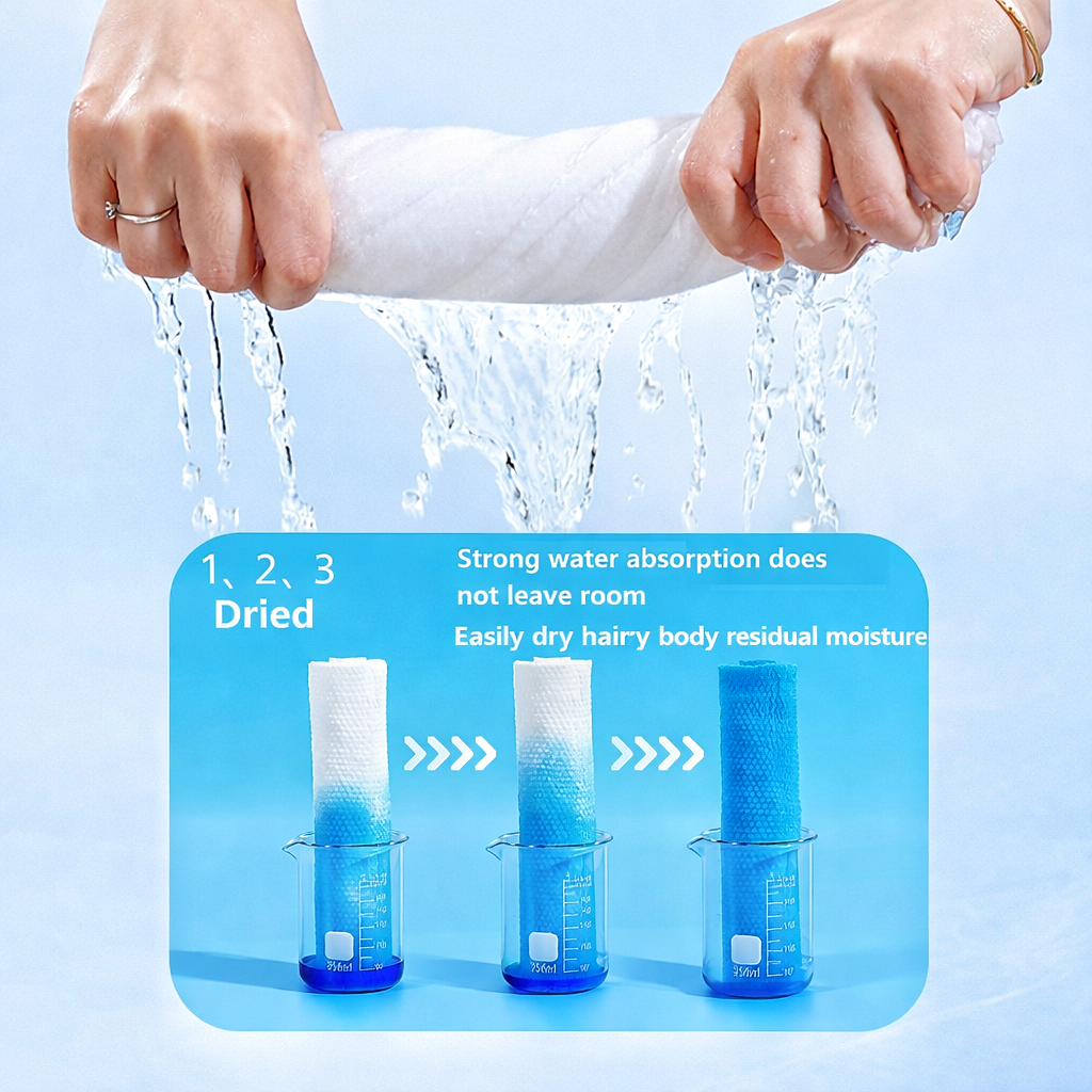 • Fast water absorption, dries body and hair efficiently