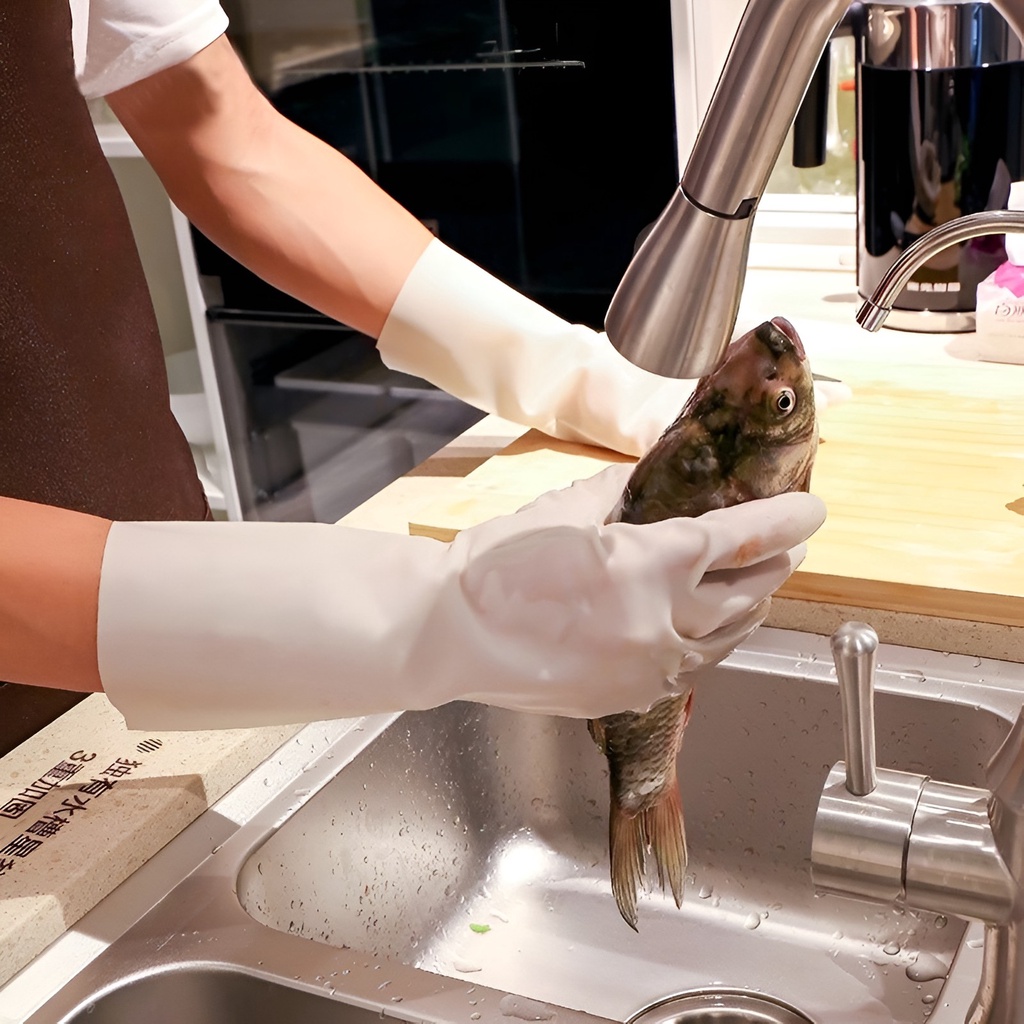 Latex Dishwashing Gloves Anti Slip Cleaning Gloves Kitchen Waterproof Gloves Household Rubber Gloves Reusable Kitchen Gloves